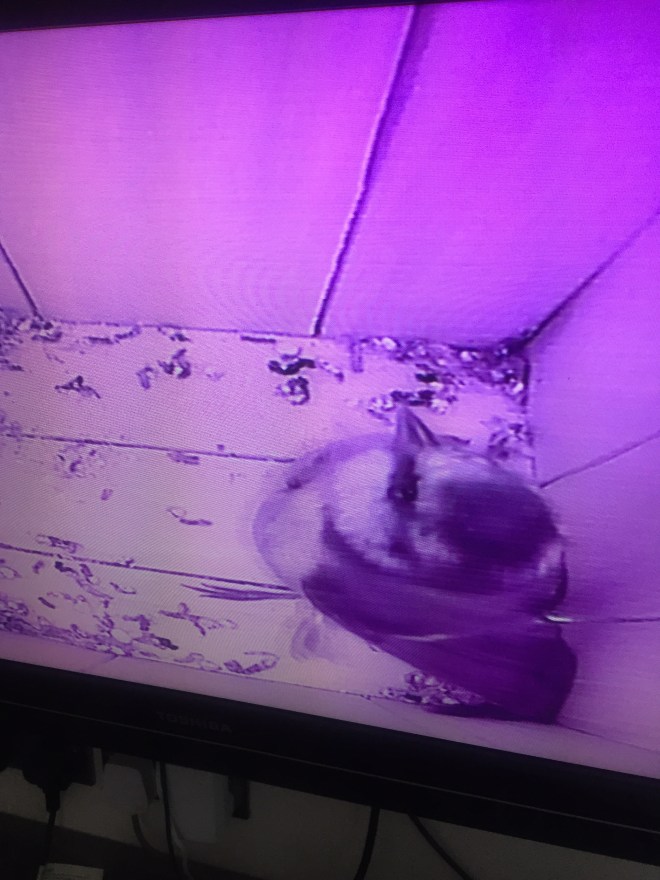 New nesting box with a camera finally put up on a north facing wall in January. Not one living thing bothered to take a look inside – until yesterday (27 April) 😃